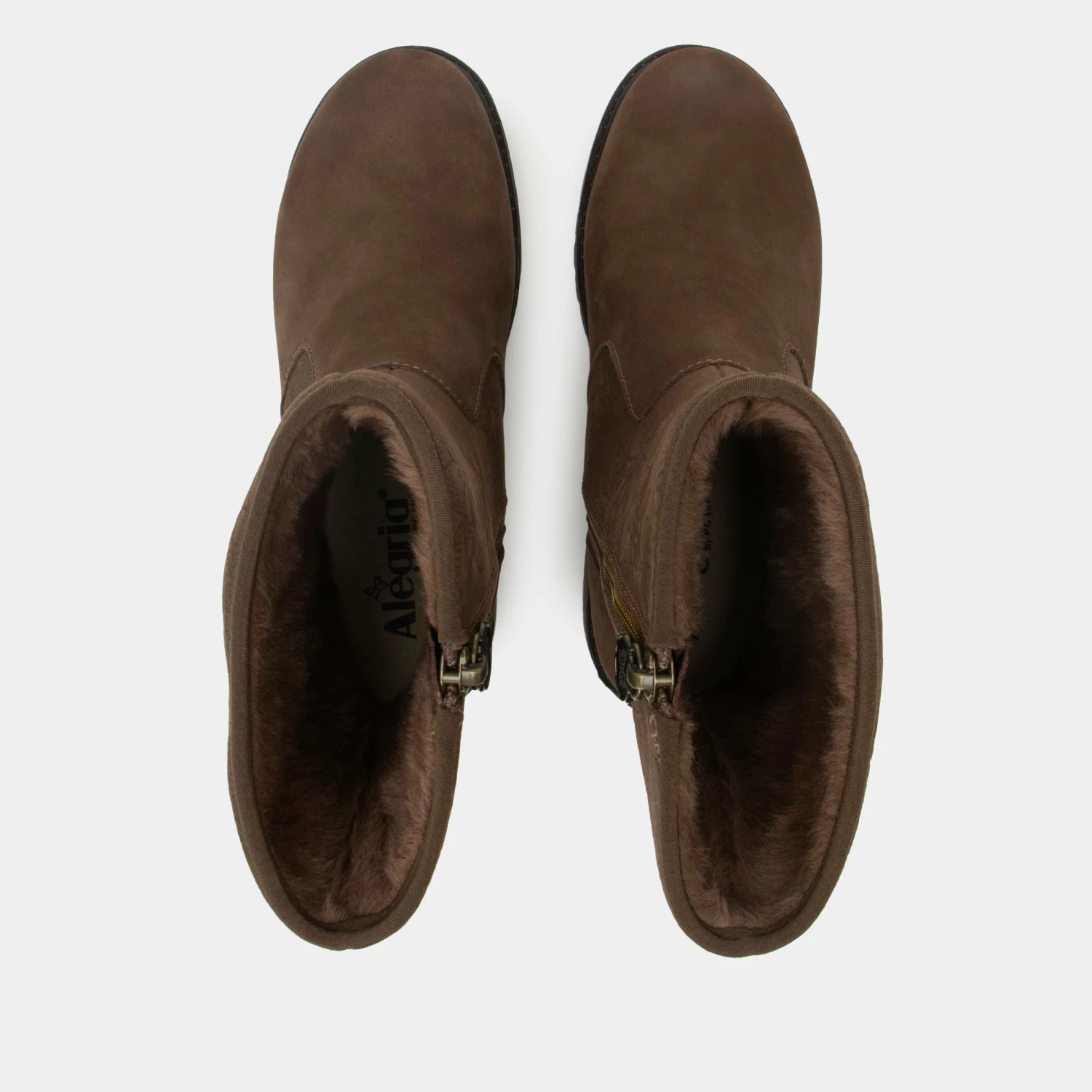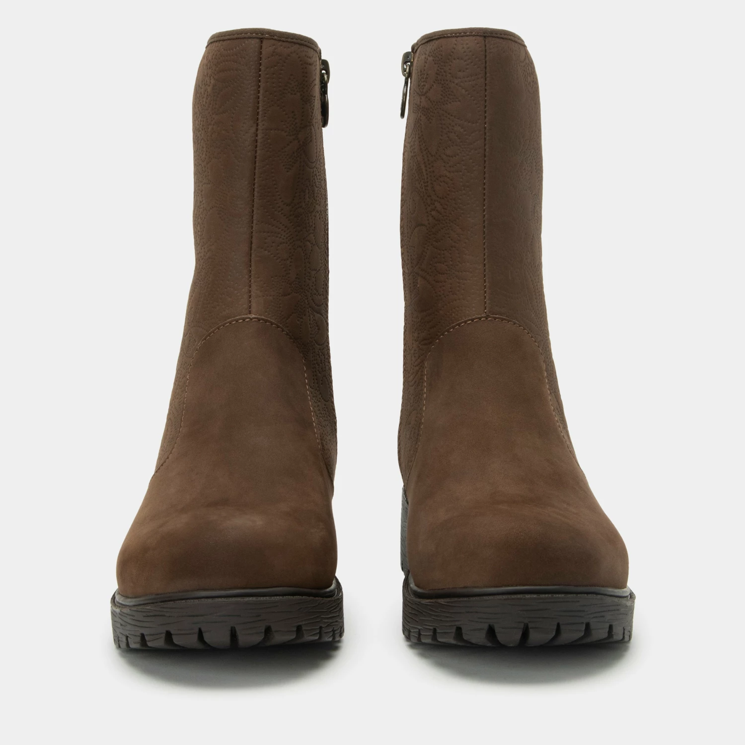 Featured in a La Dee Dottie Brown colorway on a leather upper with a beautiful stamped suede leather shaft.