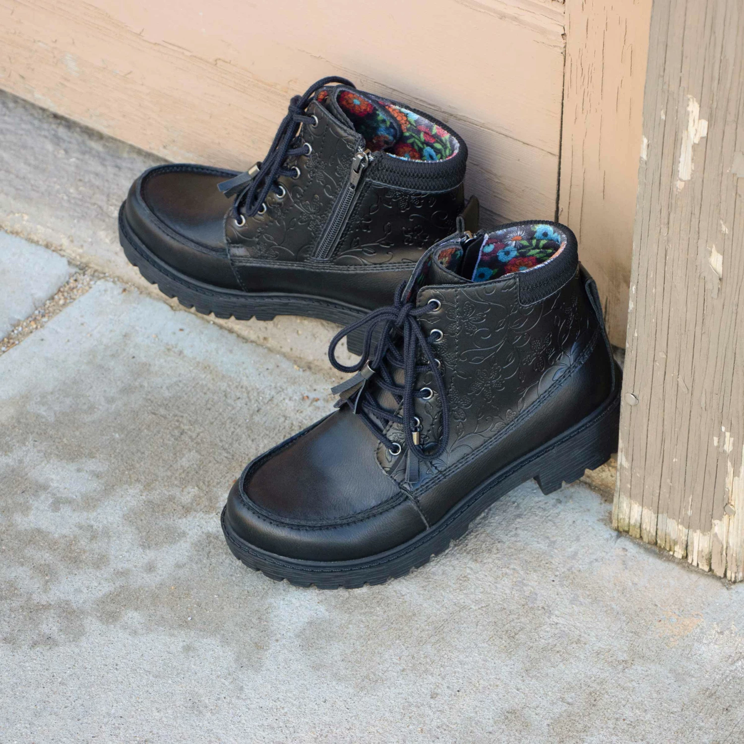 Build a boot wardrobe around this utility-inspired leather style that delivers functionality with water repellant taped seams and slip-resistant luxe lug outsole. For on and off ease, it features an inside zipper and back pull tab. For underfoot support, there’s a removable suede-lined polyurethane, cork and memory foam footbed.