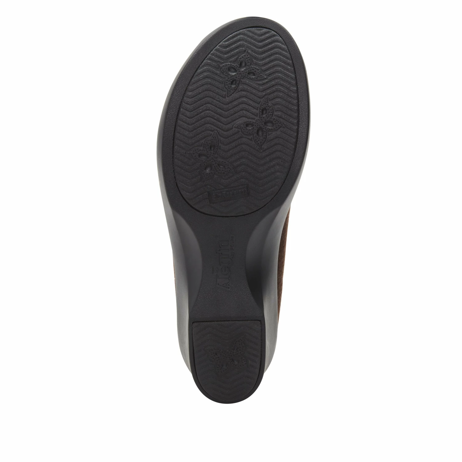 Featured here in Mocha Fleece elastic wool upper, it’s warm and accommodating perfect for the cooler season.