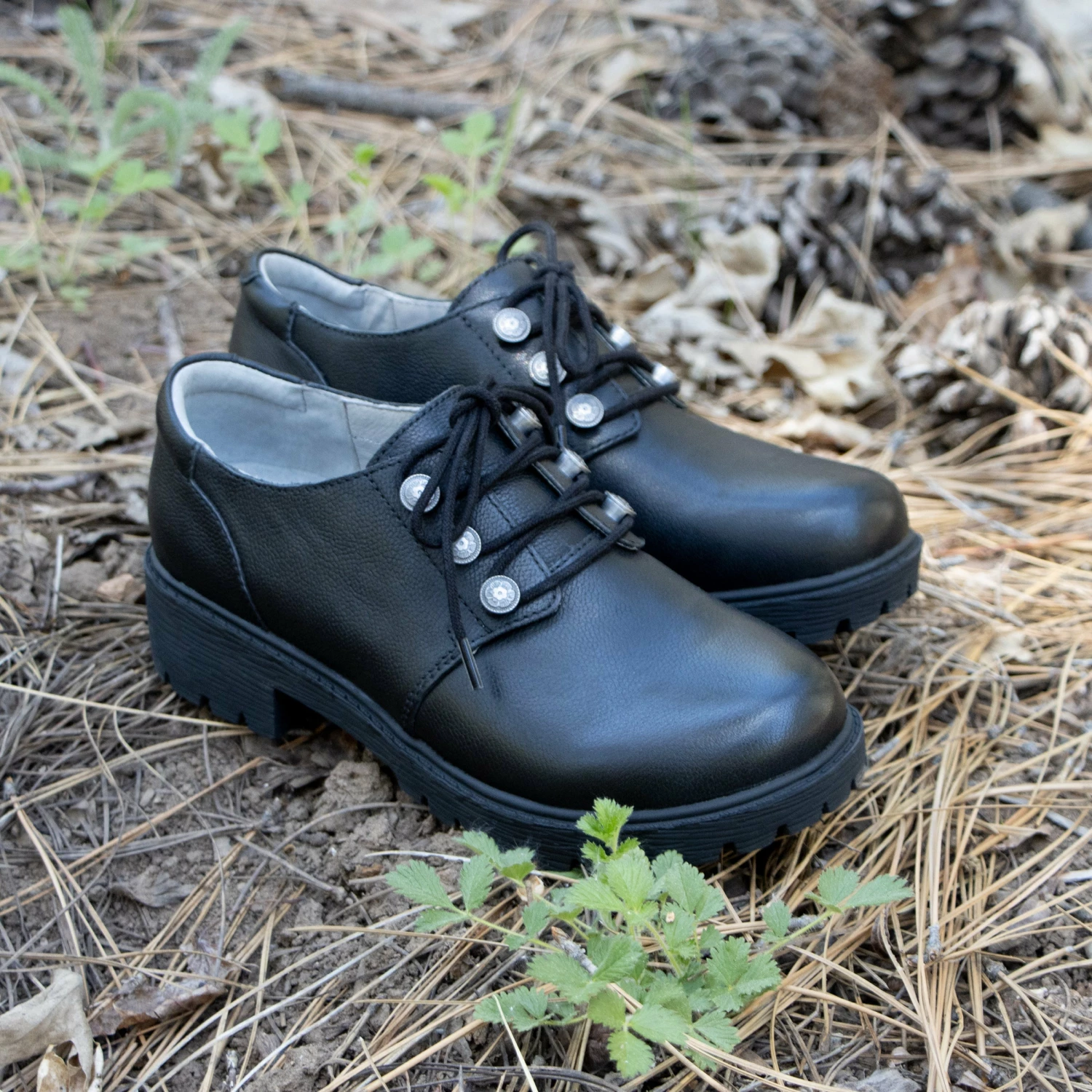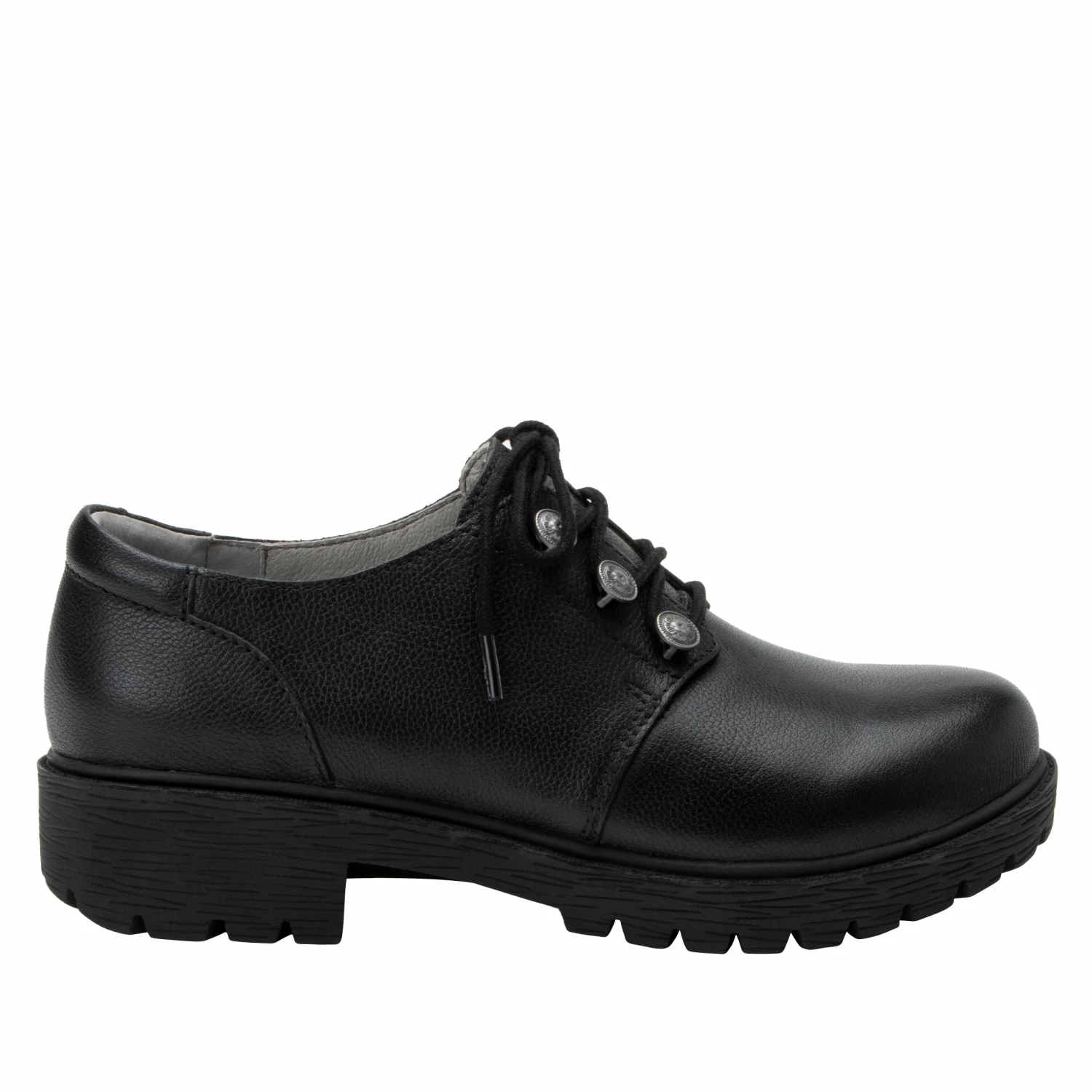 Hands free is the way to go in this street-smart leather oxford featuring adjustable laces secured with decorative metal hardware for added flexibility.