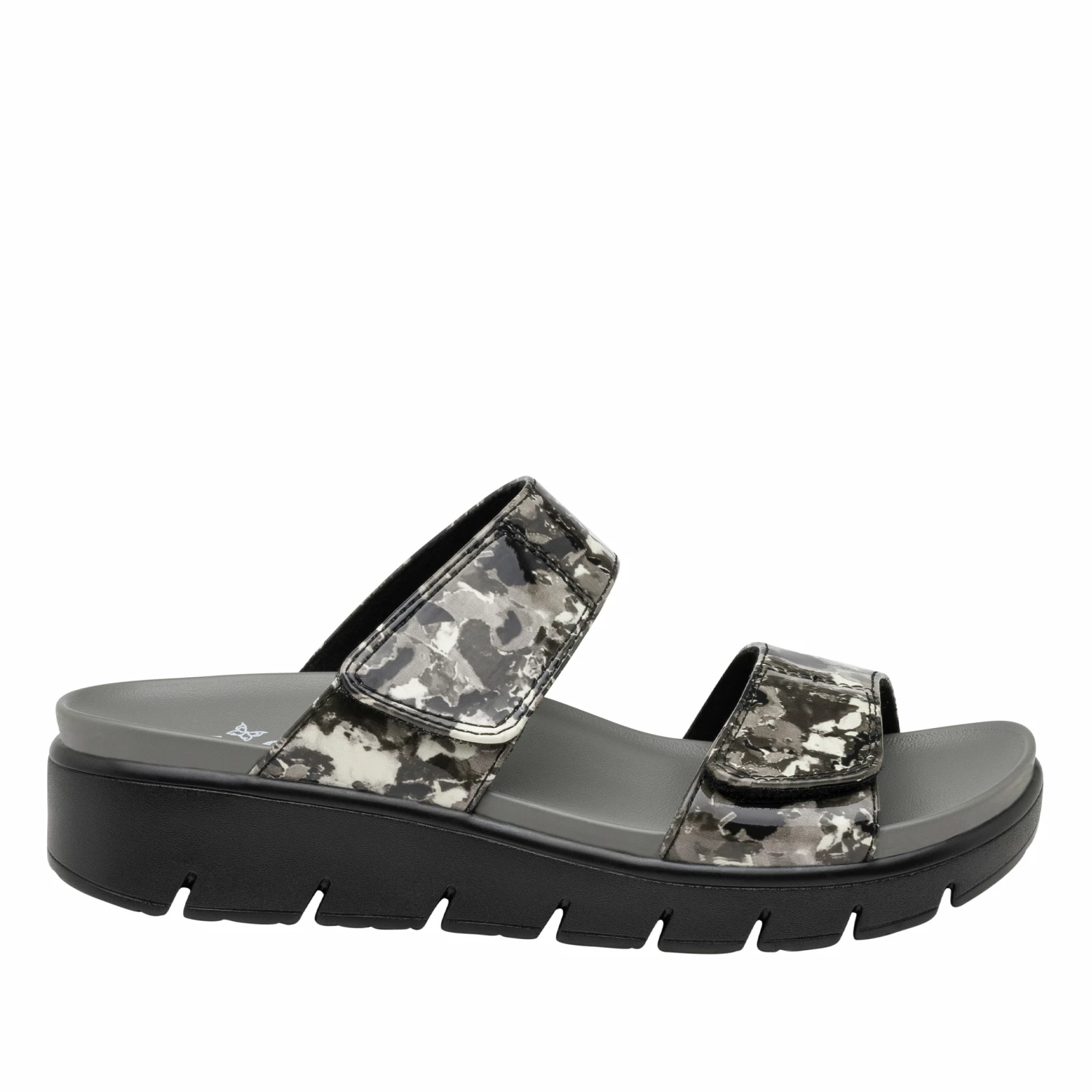 What could be easier to wear than this vegan leather sandal that slides on and off in a flash with a duo of adjustable hook-and-loop closure straps. The contoured footbed and lightweight retro-inspired heritage outsole adds even more function to this essential summer look. Featured in a neutral Collage Greys print, this versatile colorway will be an essential addition to your sandal collection.