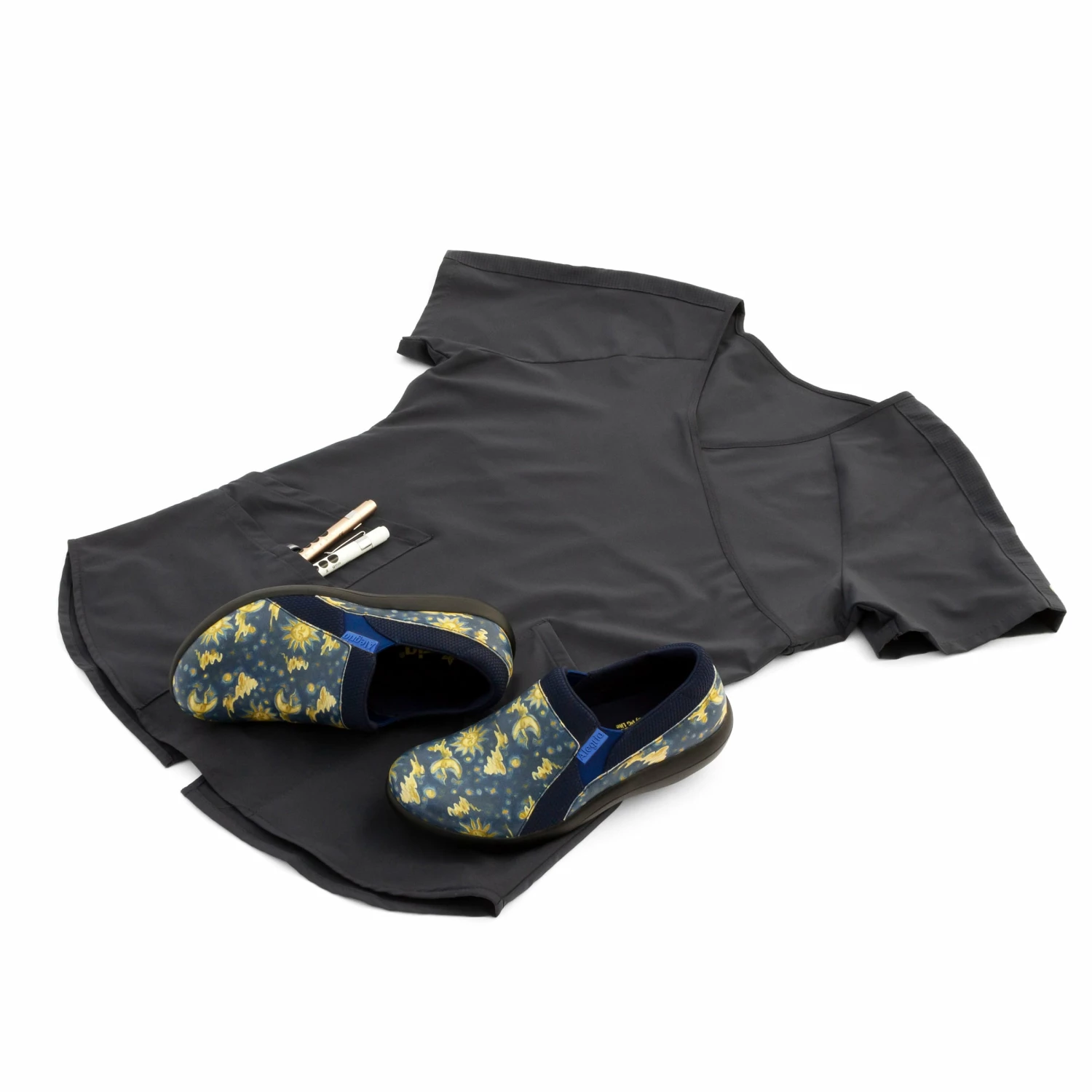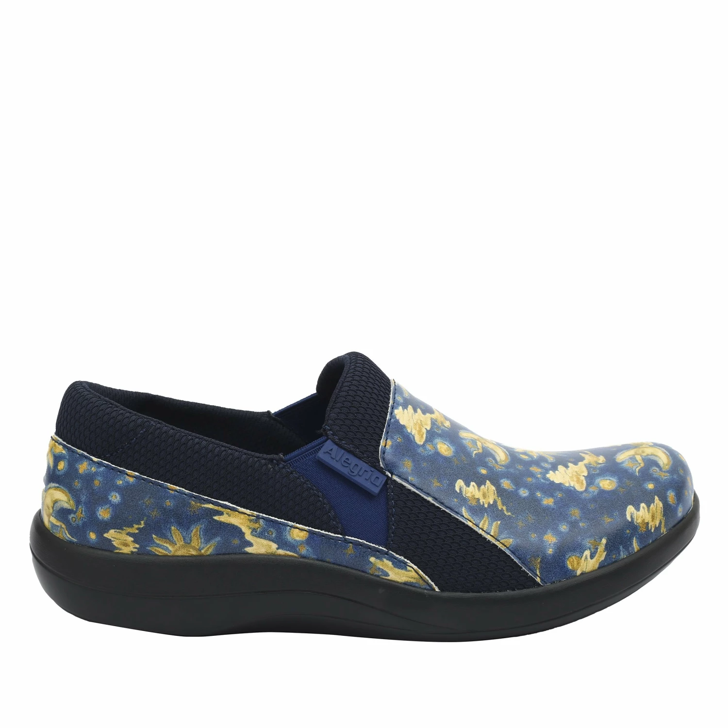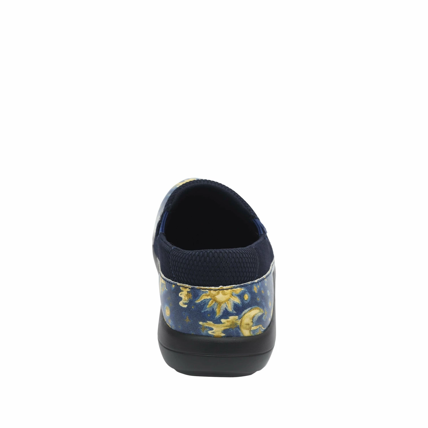 Featured here in a whimsical Lullaby pattern, exclusive to Alegria, on a printed vegan leather upper.
