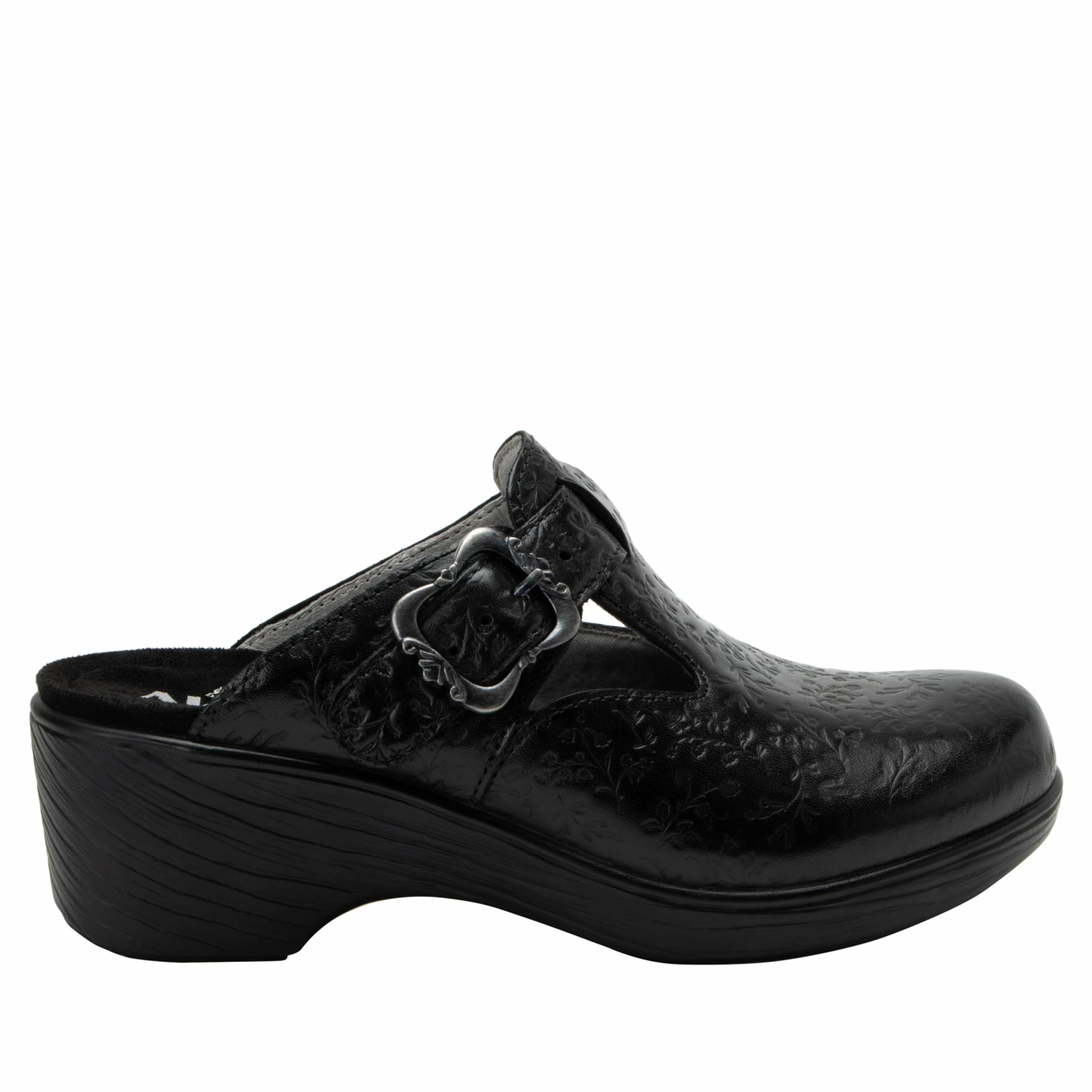 It’s all about pattern power in this Selina wedge clog dressed up with an adjustable side buckle strap and lightweight slip-resistant Wood Look Wedge outsole. Built-in arch support and a gently cushioned footbed lined with soft microsuede provide an extra degree of underfoot comfort.