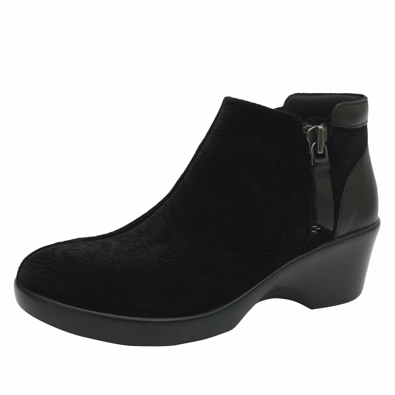 Featured in embossed stretch Raven Velvet upper for the ultimate luxe look and feel.