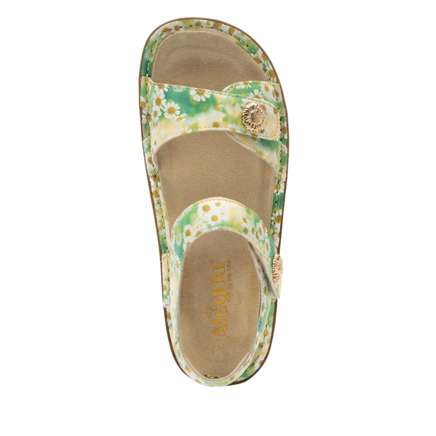 The Vienna featured in a fun Coming Up Daisies floral print on a genuine leather upper.